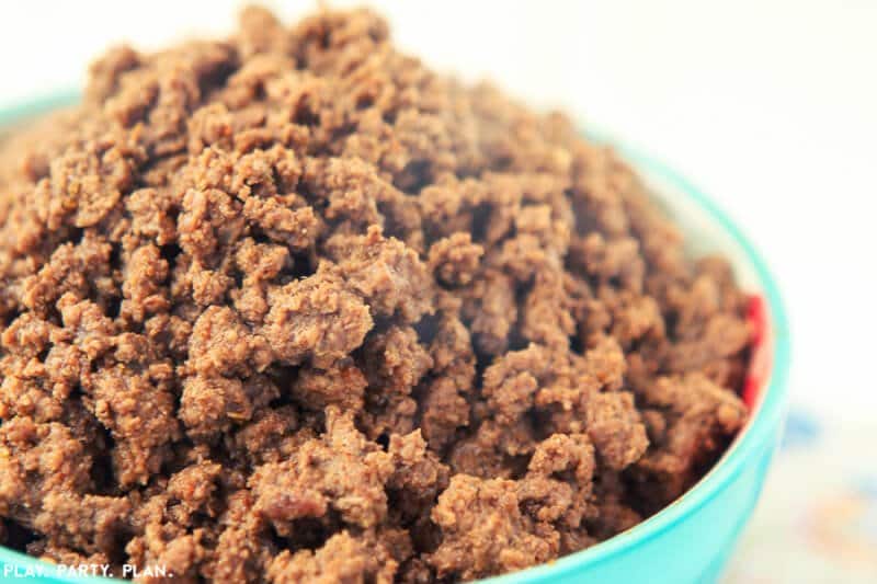 - Brown and drain fat from hamburger meat as normally done.